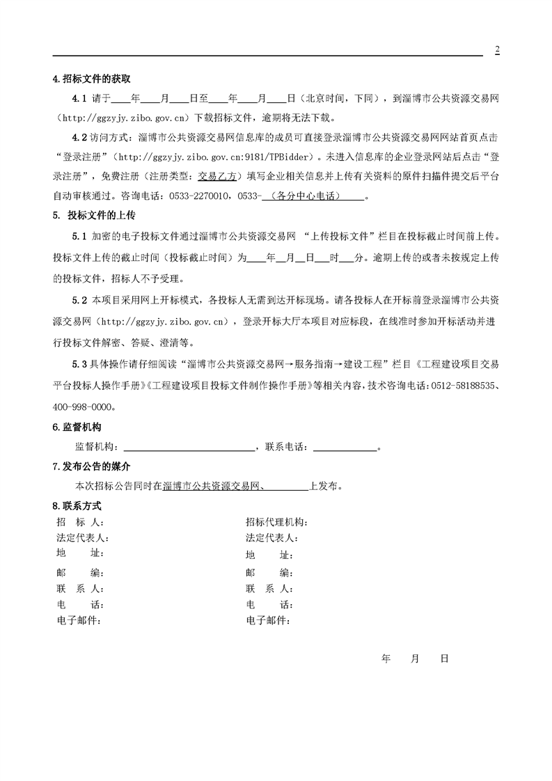 淄博市房屋建筑和市政工程(勘察)设计招标文件示范文本(2025年版)