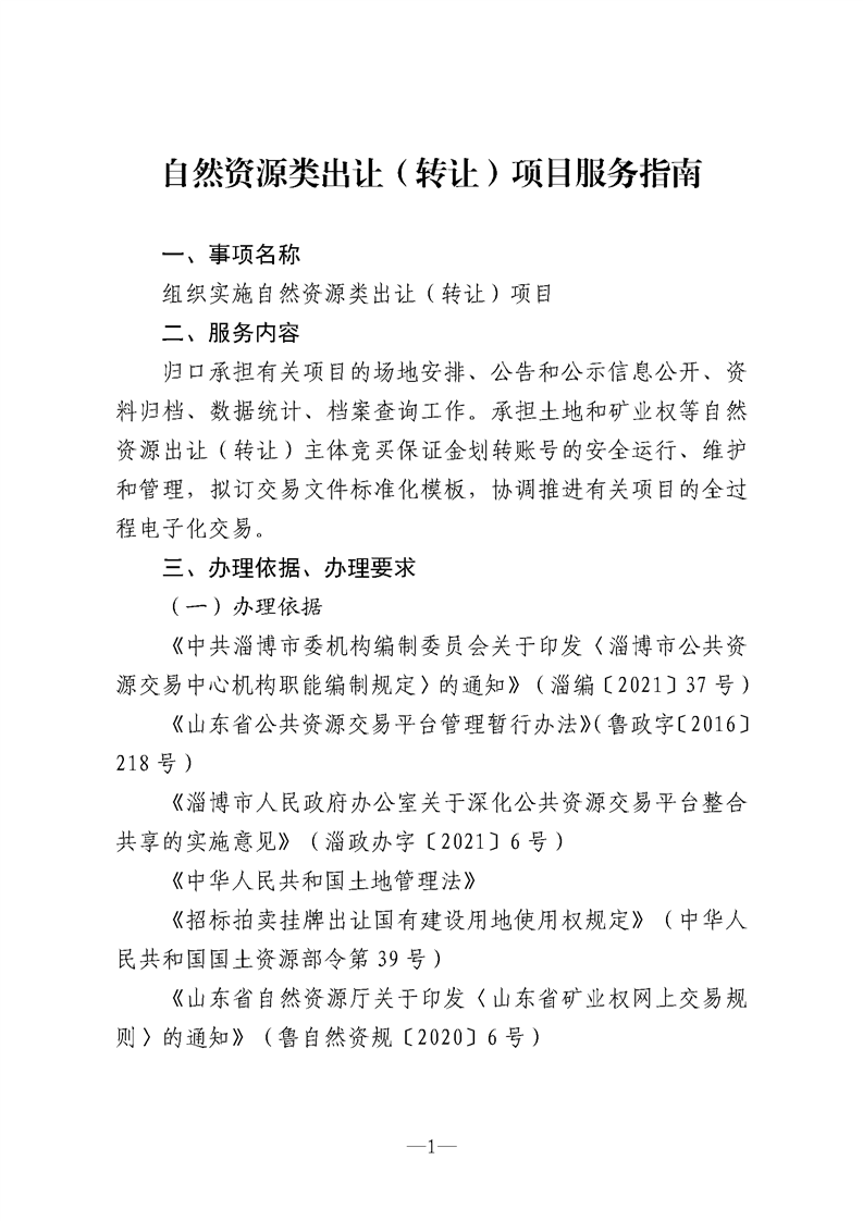 自然资源类出让(转让)项目服务指南及流程图