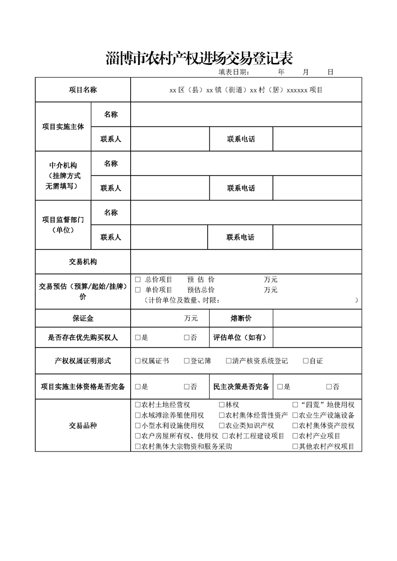 (样表)淄博市农村产权进场交易登记表.docx