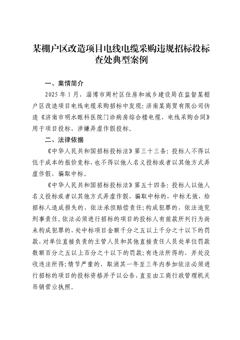 某棚户区改造项目电线电缆采购违规招标投标查处典型案例