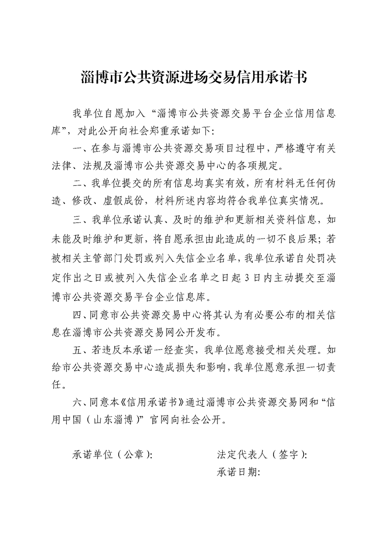淄博市公共资源进场交易信用承诺书(投标人).docx