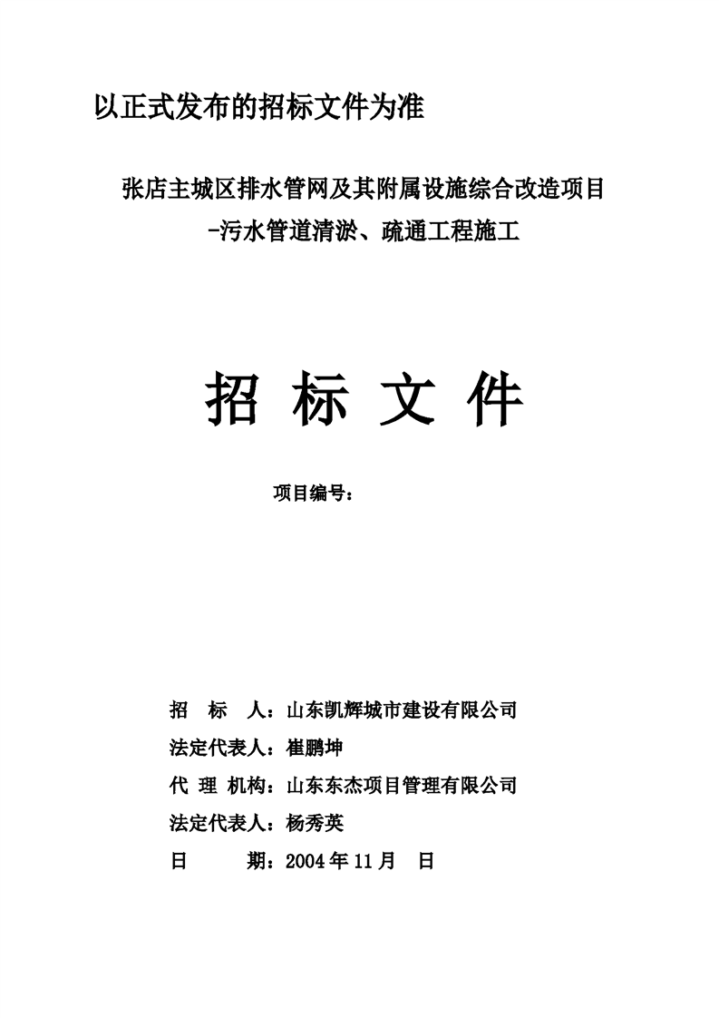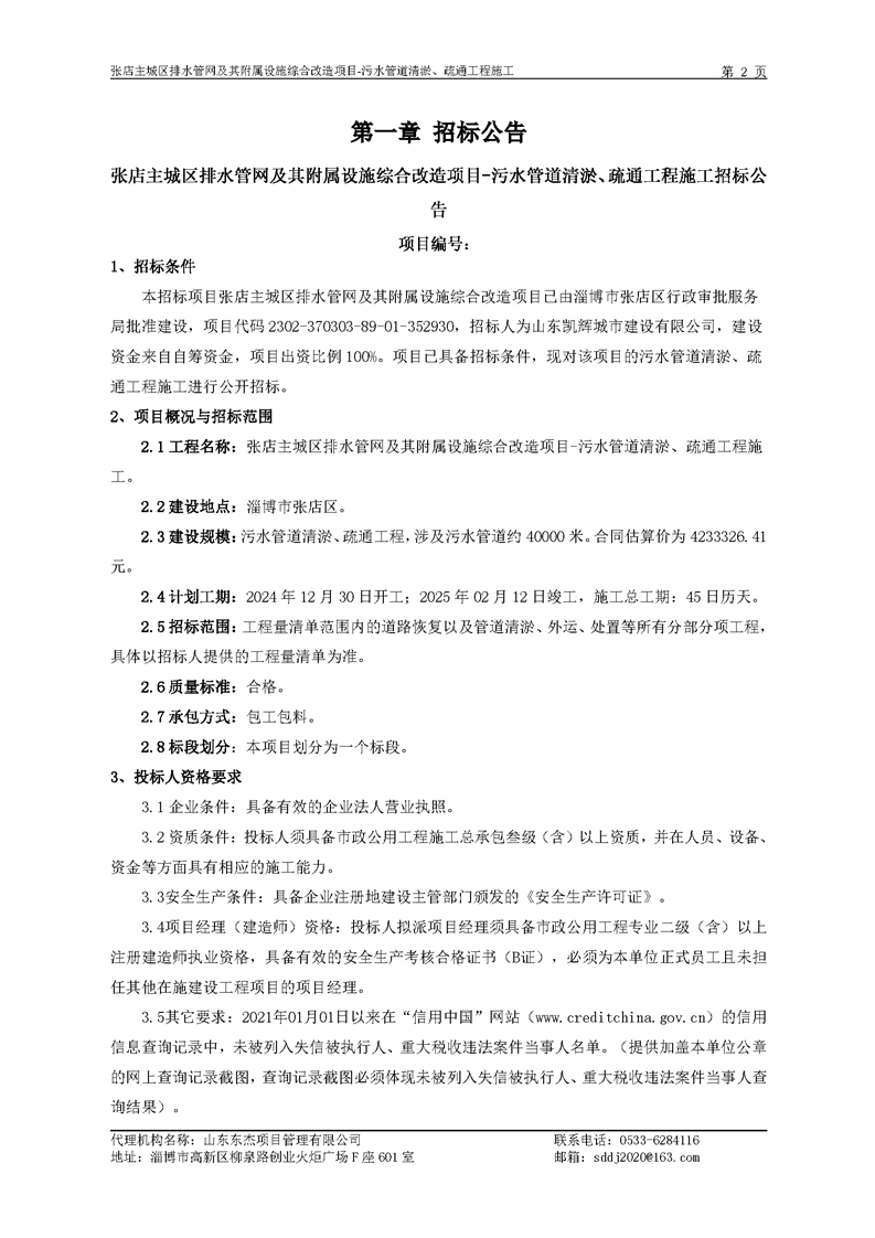 张店主城区排水管网及其附属设施综合改造项目 -污水管道清淤、疏通工程施工招标文件预公示