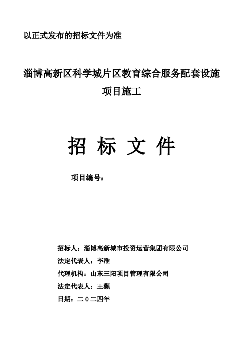 淄博高新区科学城片区教育综合服务配套设施项目施工招标文件预公示