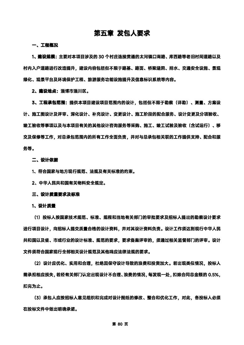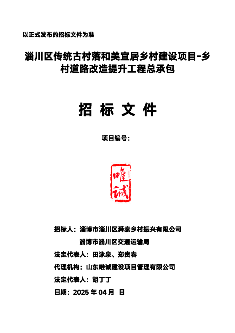 淄川区传统古村落和美宜居乡村建设项目-乡村道路改造提升工程总承包招标文件预公示