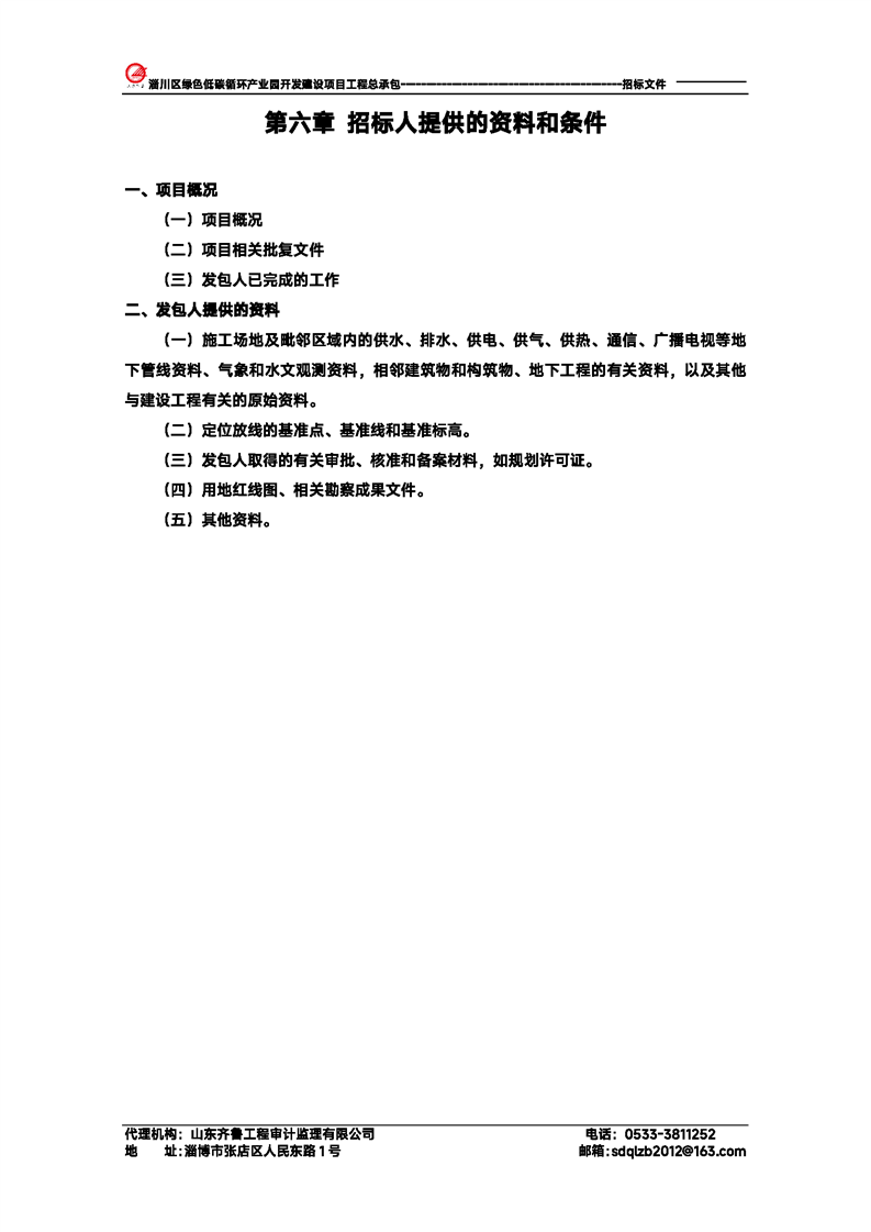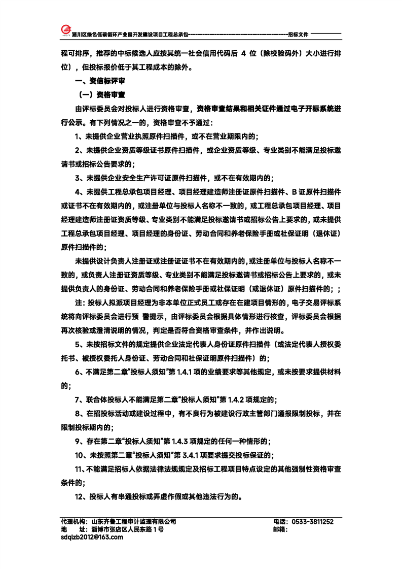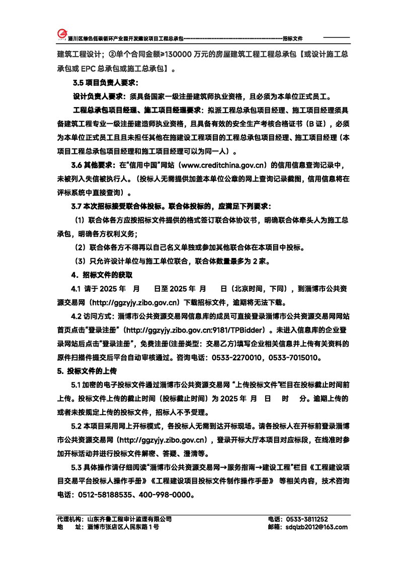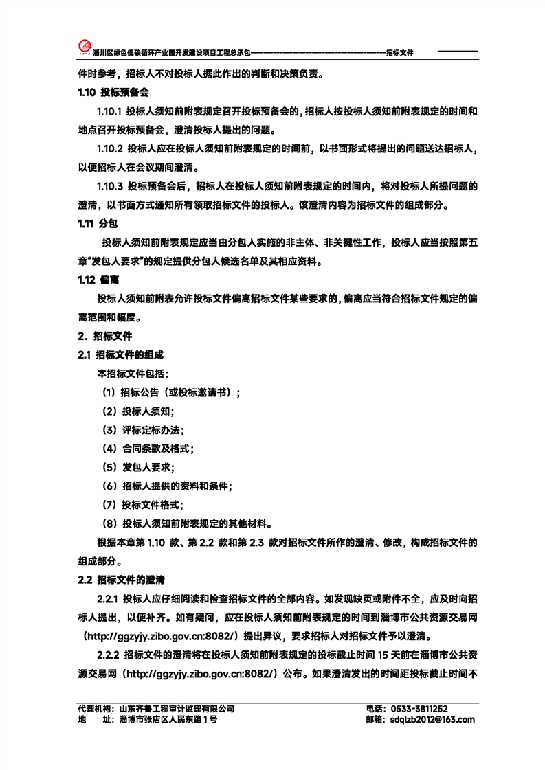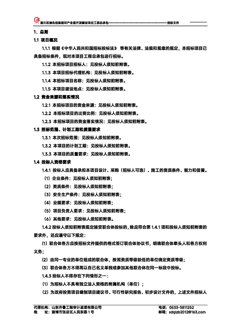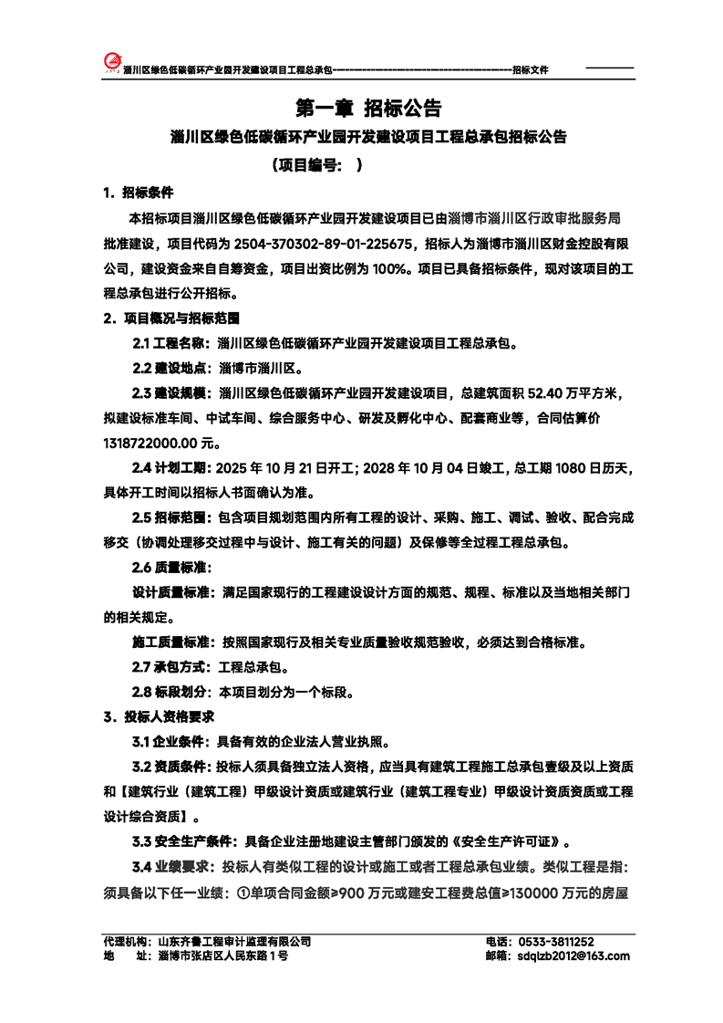 淄川区绿色低碳循环产业园开发建设项目工程总承包招标文件预公示