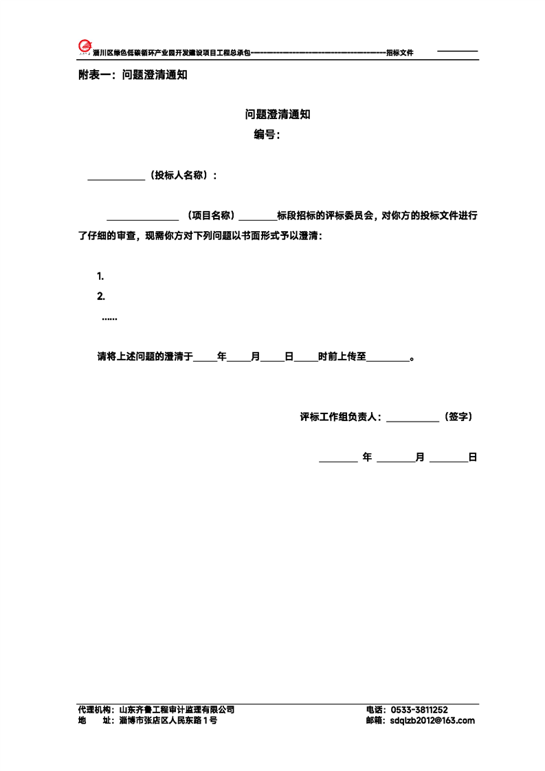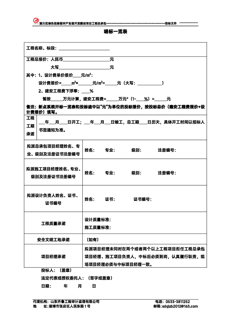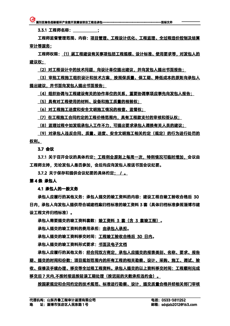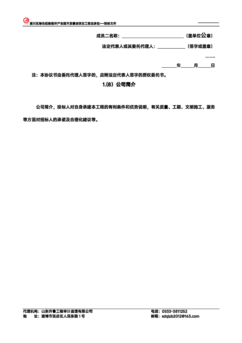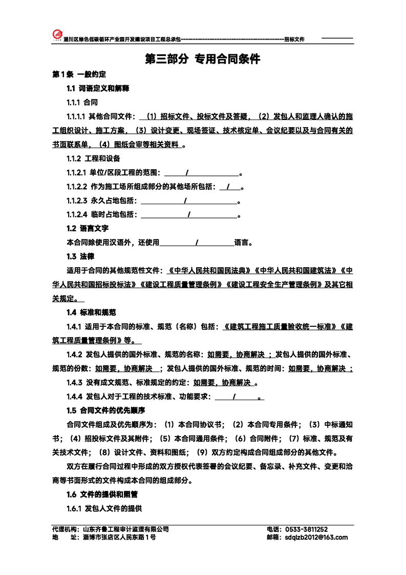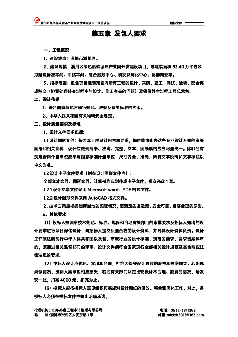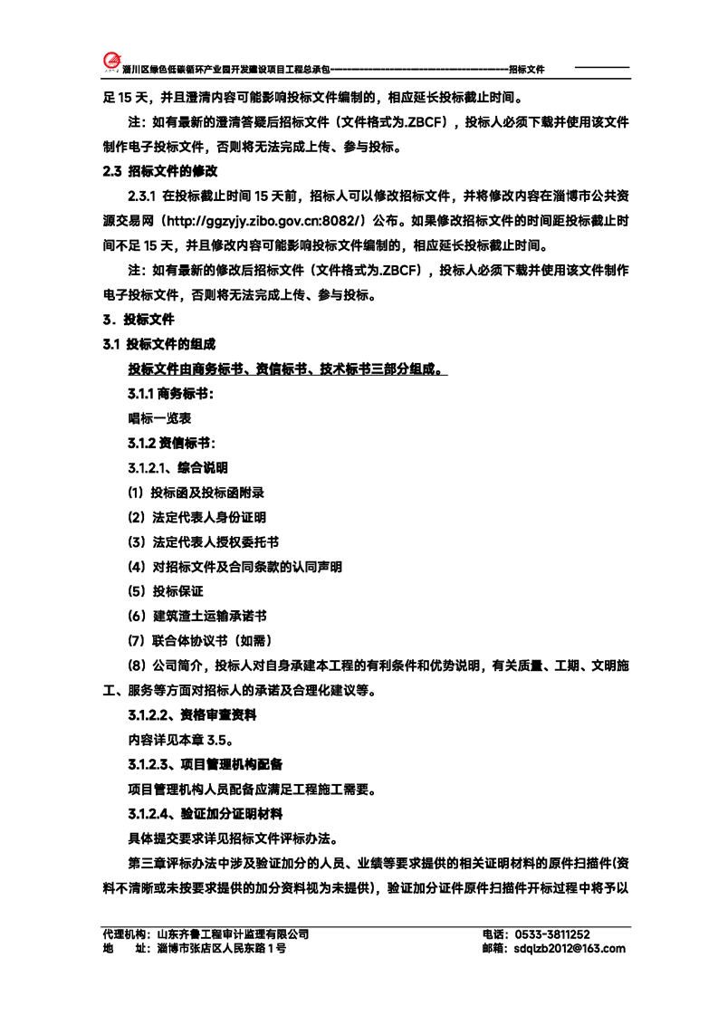 淄川区绿色低碳循环产业园开发建设项目工程总承包招标文件预公示