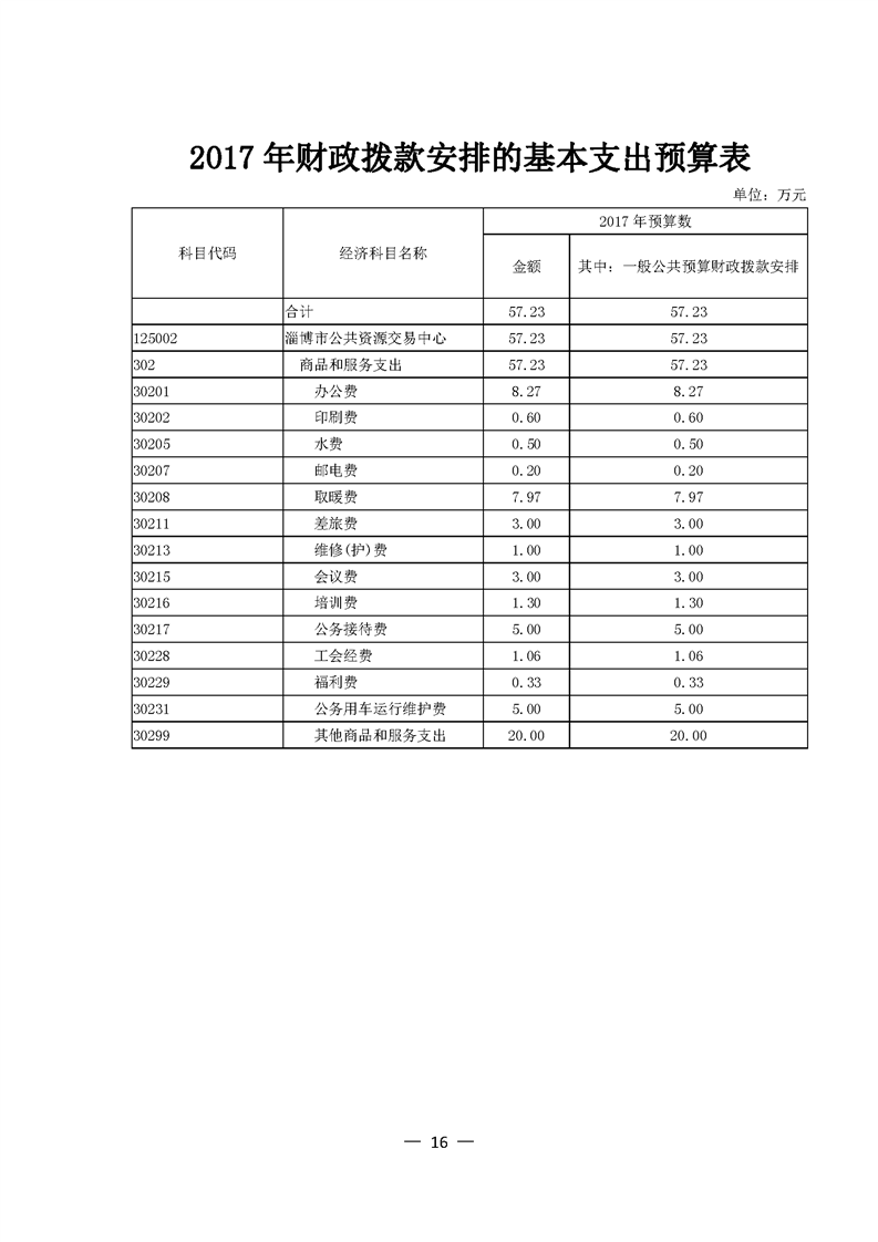 2017年交易中心部门预算公开