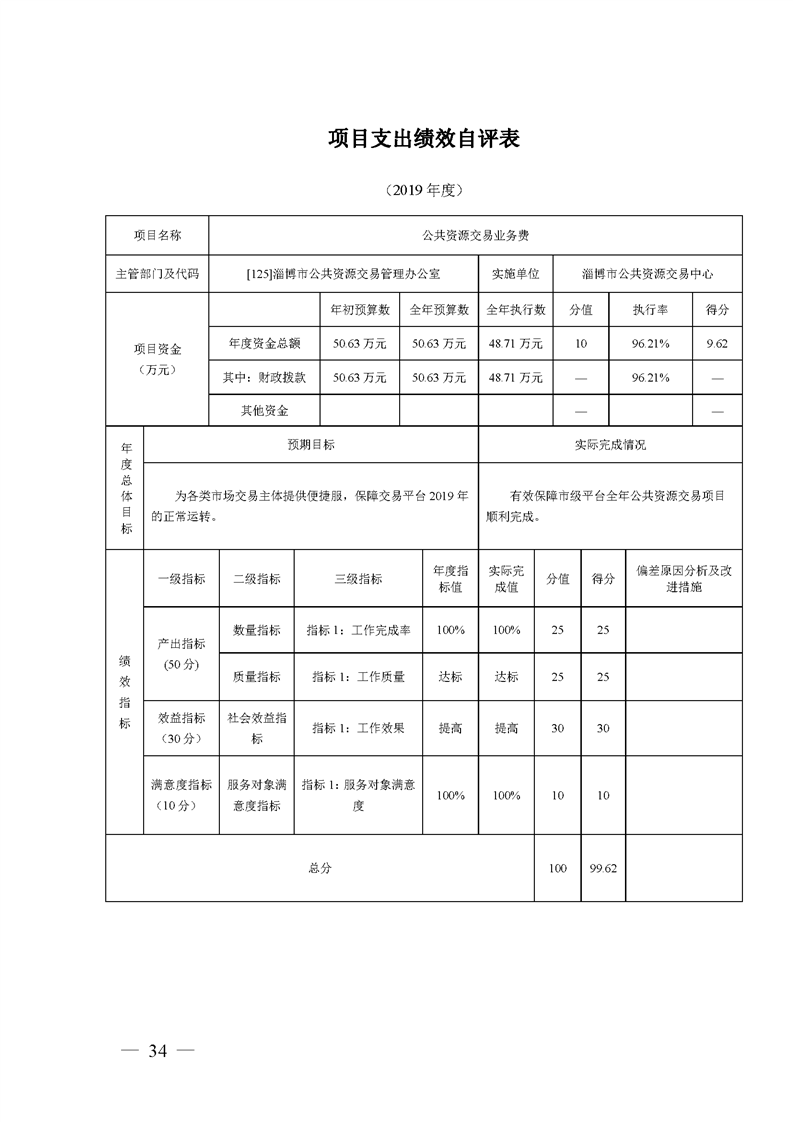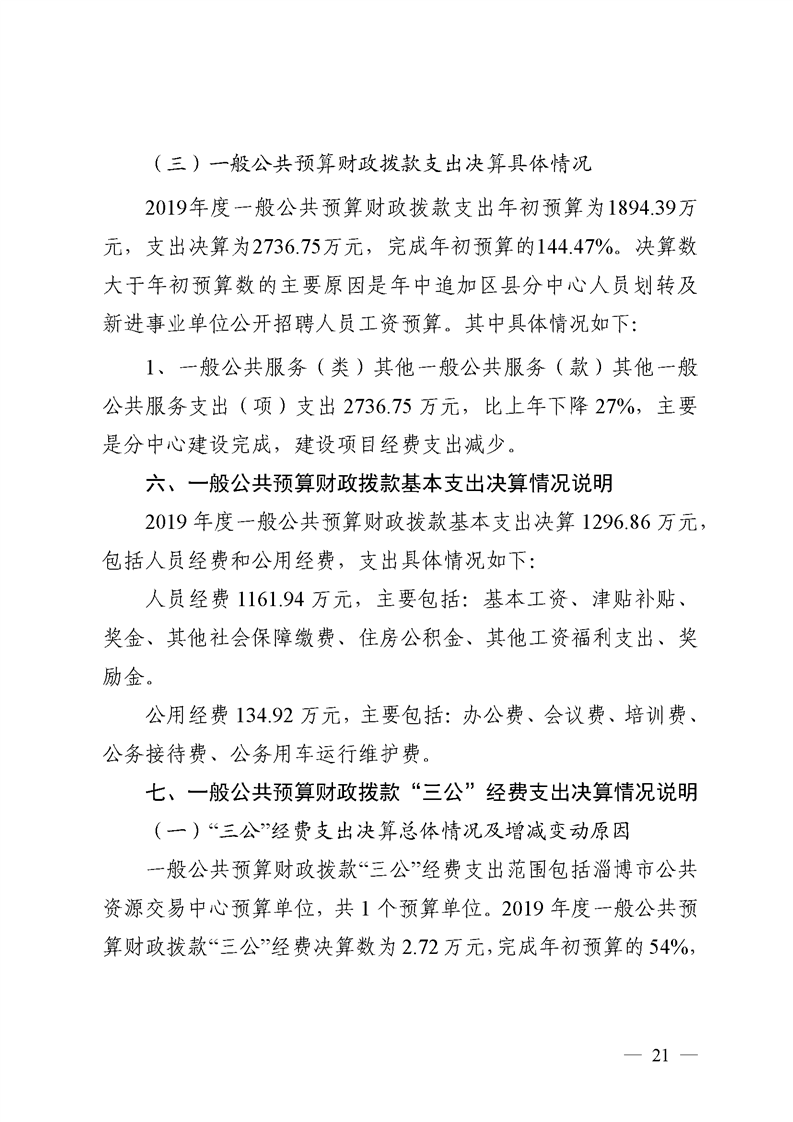 2019年度交易中心部门决算公开