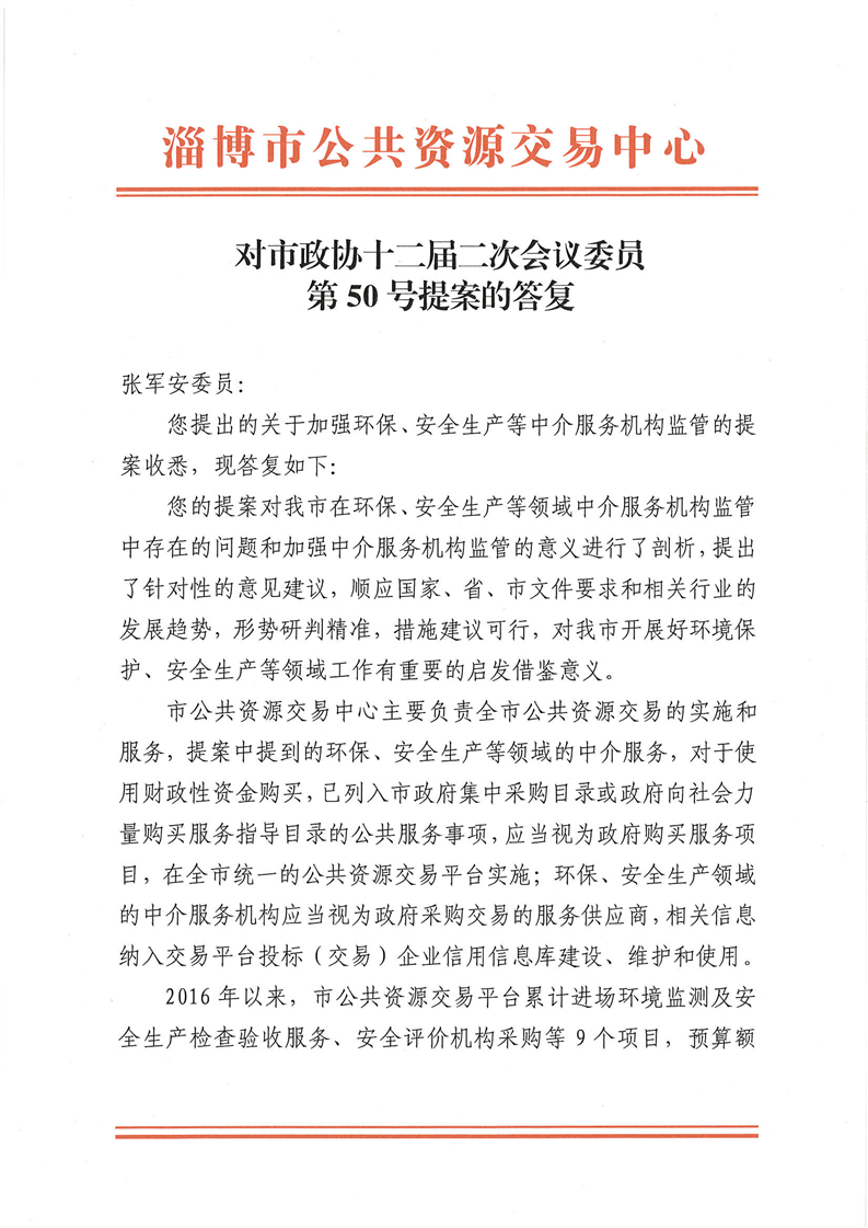 关于加强环保、安全生产等中介服务机构监管的提案(市政协十二届二次会议委员第50号提案的答复)